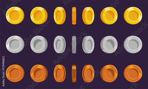 Gold coins rotating effect. 2d vector animation sprite sheet.