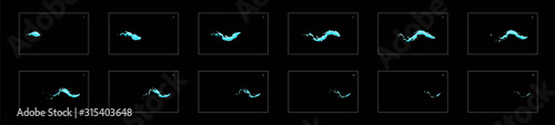 Animation water wave frame set. Water splash for animation and visual effects. Sea or ocean wave with drops or splatters. Cartoon vector illustration