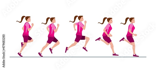Running man sequence. Run character frame animation 2d runner profile, sprite sheet jogging motion cycle loop fitness exercise fast sport movement guy, splendid vector illustration