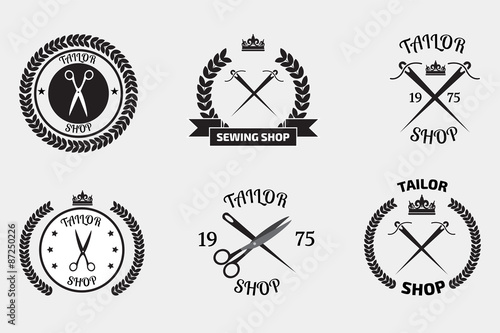 Set of tailor logo labels, emblems. Tailor shop theme. Tailor sh