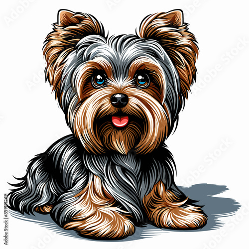 Yorkshire terrier. A color, artistic image of the head of a Yorkshire terrier in watercolor style on a white background. Digital vector graphics.
