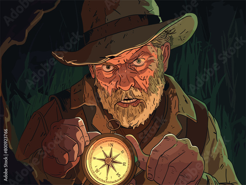 wither background, A lost explorer holding a compass with trembling hands., in the style of animated illustrations, wither background
