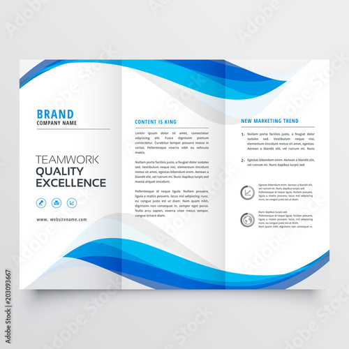 Corporate business trifold brochure template. Modern, Creative and Professional tri fold brochure vector design. Simple and minimalist promotion layout with blue color.