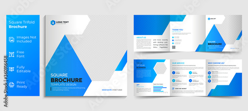 Tri fold brochure design with square shapes, corporate business template for tri fold flyer. Creative concept folded flyer or brochure.