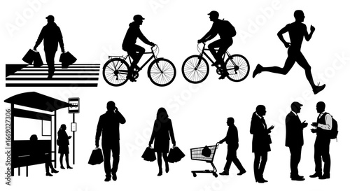 Dynamic Silhouette Icons of People in Various Urban Activities and Commutes