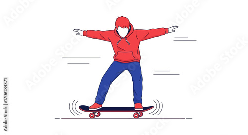 Skateboarder Gliding Dynamically With Extended Arms Depicting Balance And Speed Focus