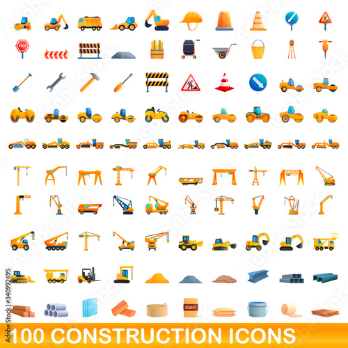 100 construction icons set. Cartoon illustration of 100 construction icons vector set isolated on white background