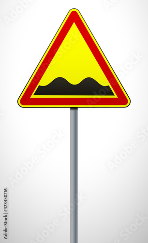 Warning road sign Rough road. The sign on the post. Traffic Laws. Signs and road markings. Vector illustration