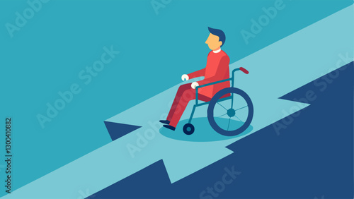 Uneven Pavement An of a person in a wheelchair struggling to maneuver over an uneven sidewalk with cracks and potholes clearly visible.