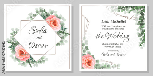 Wedding Invitation card templates with realistic of beautiful  flower on background color.