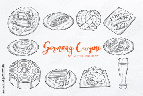 Elegant Vector Illustrations of Apfelstrudel and Kartoffelpuffer