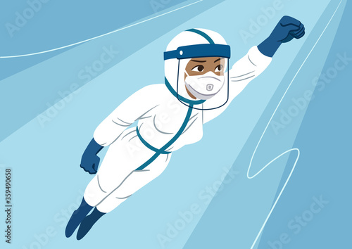 Super doctor concept illustration. Male and female doctors wearing masks with superhero cloaks, Real heroes, Coronavirus outbreak. Hospital medical staff with masks and stethoscope. Vector flat style