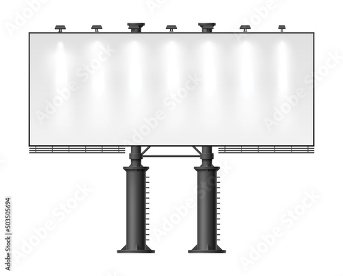 Vector realistic outdoor Billboard isolated on white background. Mockup. Big horizontal banner for advertising. Screen for presentation and advertising. Empty template. Front view. EPS 10.