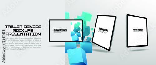 Tablet frame with blank screen, Realistic 3D tablet from three sides. Template for infographics or presentations. UI, UX design. Electronic digital devices