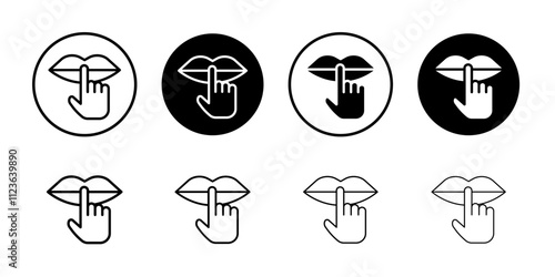 Please do quite pssst icon. Woman lips with finger showing silence sign. Do not disturb can be used for library infographic symbol. Editable vector illustration. Design on white background EPS 10