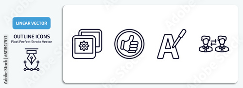 social media marketing outline icons set. social media marketing thin line icons pack included photos, quit a social like, letter color, partner vector.
