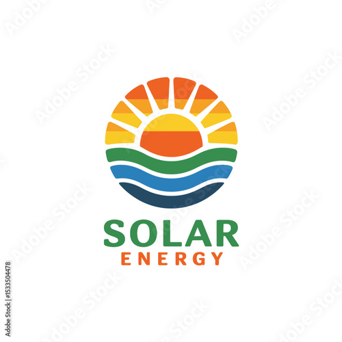 Circular symbol featuring a wind turbine, leaves, and water waves, representing a renewable energy company, Create a sleek symbol for a renewable energy company