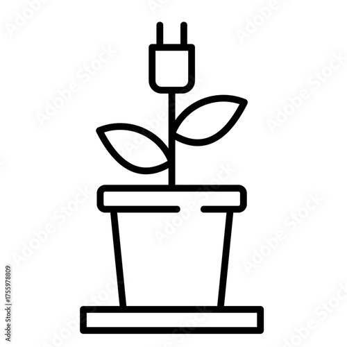 Outline Icons of Energy Resources Featuring Batteries, Solar and Wind Power