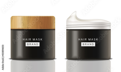 Hair butter cosmetics vector realistic. oil or butter mask treatment. Product placement mock ups