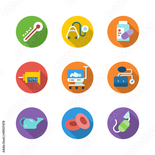 vector set of  birth center icons, maternity hospital illustrations, ultrasound, fertilization, water birth, birthing bed, incubator, stethoscope, genetic test, laboratory, sperm test, egg cell, ivf