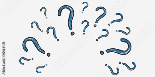 3 Question Marks 3D Handdrawn Doodle Pen Drawing Vector