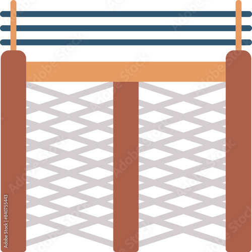 Warning icon depicting electric fence with danger symbol and lightning bolt. Isolated vector illustration.