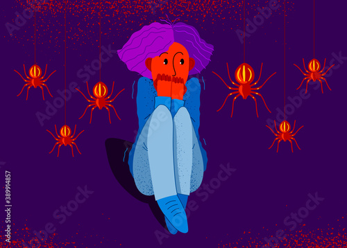 Psychiatric problems. Mental psychological disorders, phobias paranoia, depression and panic problem. Psychic illnesses vector illustration. Bipolar disorder, insomnia, emotional trauma