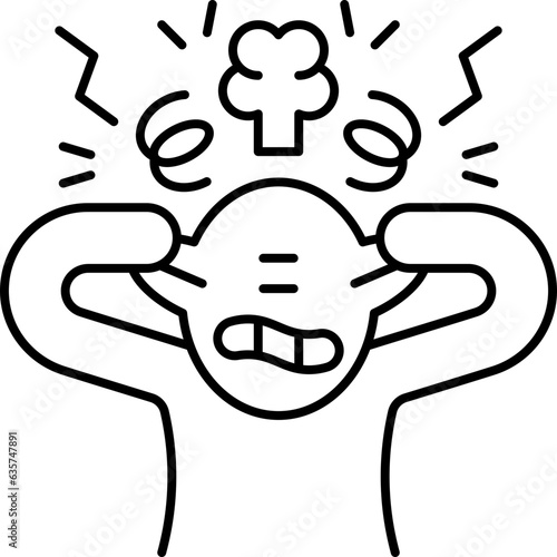Man holding head in panic and anxiety, over male character lightning and chaos of thoughts vector illustration