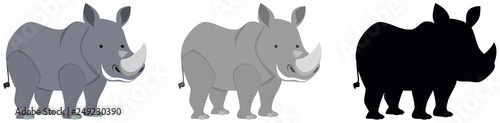 A set of African white rhinos in different poses. White rhinos and their cubs. Realistic vector animal