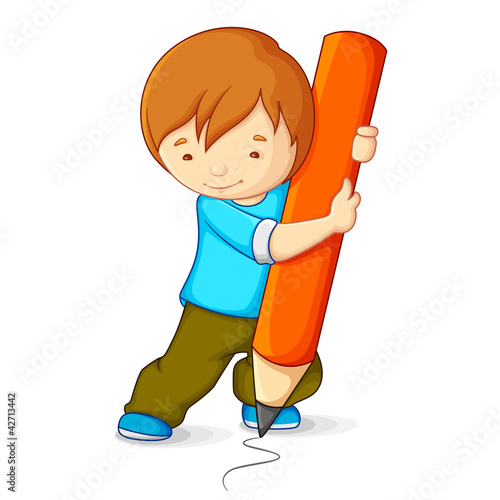 Little boy reading a book, light coming from it's page, EPS 8 vector illustration