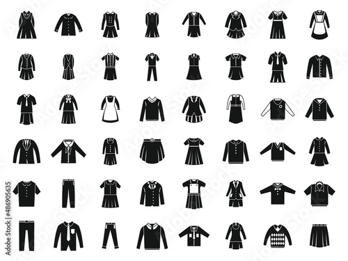 Happy children in school uniform with backpacks in class. Boys and girls multiethnic classmates go back to school. Kids playing, standing in different poses set. Cartoon vector illustration collection