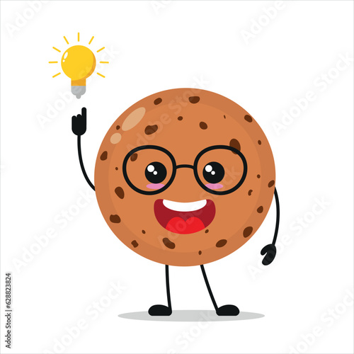 Cute smart cookie character. Funny biscuit got inspiration idea cartoon emoticon in flat style. bakery emoji vector illustration