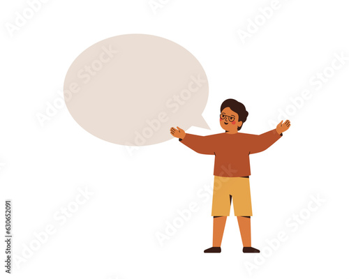 Concept of using gadgets by child, character of little boy with cell phone in his hands surfing internet, chatting and social media. Distance education, dependence on smart technology.