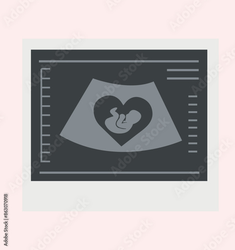 Black and white icon of an ultrasound machine displaying a fetus during a medical exam