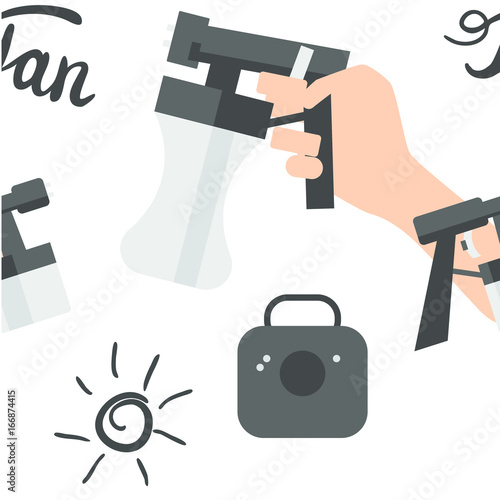 Vector tan spray machine and woman in bikini pattern with calligrpahy text