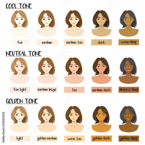 Full body brunette woman in bikini showing tanning tones from natural to dark tan