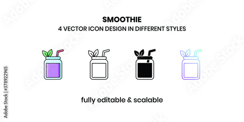 Vector glass glass of orange green yellow juice with straw for cocktail flat with stroke