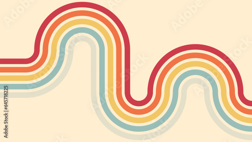 Vintage abstract background of 1970s hippie retro style in rainbow groovy wavy simple line design. 70s classic illustration suitable for poster, banner, textile, cloth, decorative wall art.
