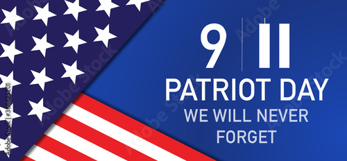 9/11 Patriot Day banner. USA Patriot Day card. September 11, 2001. We will never forget you. Vector design template for Patriot Day.