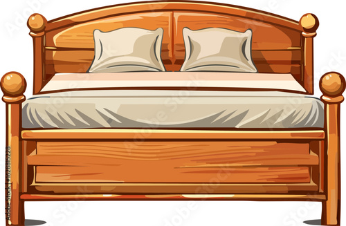 Cozy rustic wooden bed with soft bedding, enhancing bedroom comfort