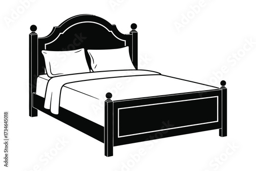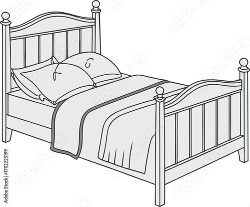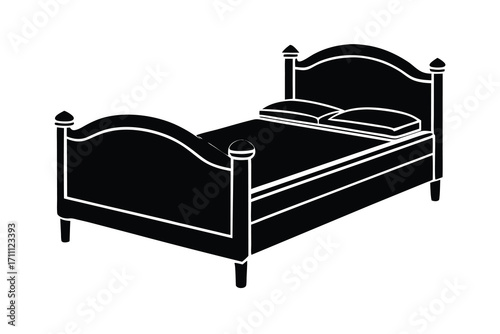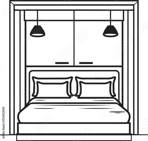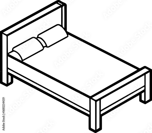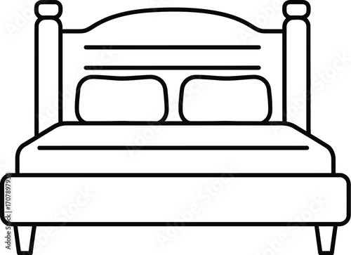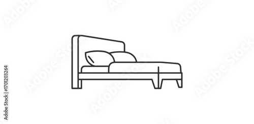 Simple outline illustration of a modern double bed with pillows perfect for bedroom design
