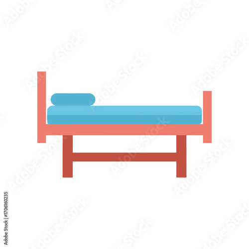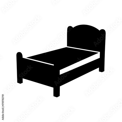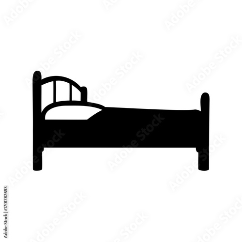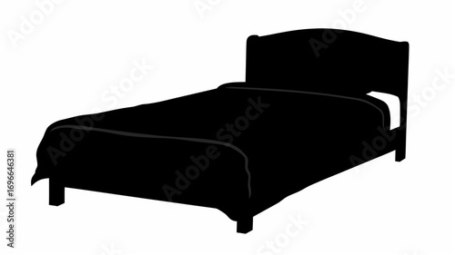 A silhouette depiction of a single bed with a curved headboard and a visible blanket or sheet covering it