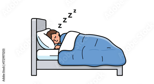 Sleeping soundly in bed cartoon illustration depicting a person resting peacefully and deeply under a cozy blanket showcasing relaxation and
