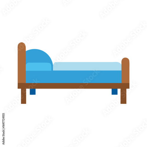 Volumetric illustration of a simple bed with blue quilt and pillows in a modern design