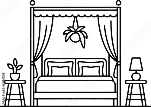 Ornate canopy bed vector illustration elegant bedroom furniture design vector