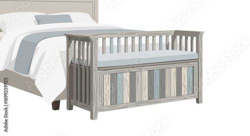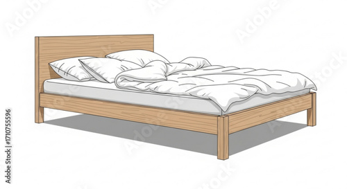 Cozy minimalist bed setup with soft textures and neutral colors isolated