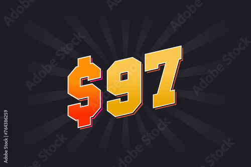 97 Dollar American Money vector text symbol. $97 USD United States Dollar stock vector