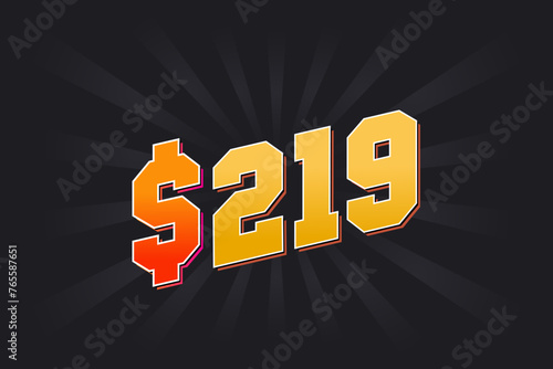 214 Dollar American Money vector text symbol. $214 USD United States Dollar stock vector