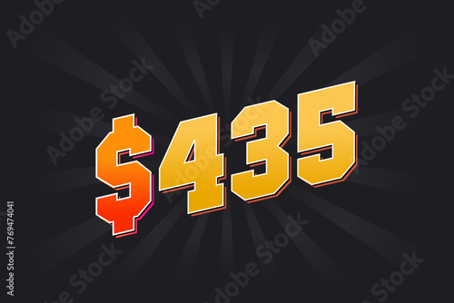 435 Dollar American Money vector text symbol. $435 USD United States Dollar stock vector