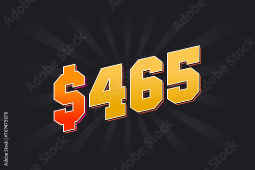 465 Dollar American Money vector text symbol. $465 USD United States Dollar stock vector